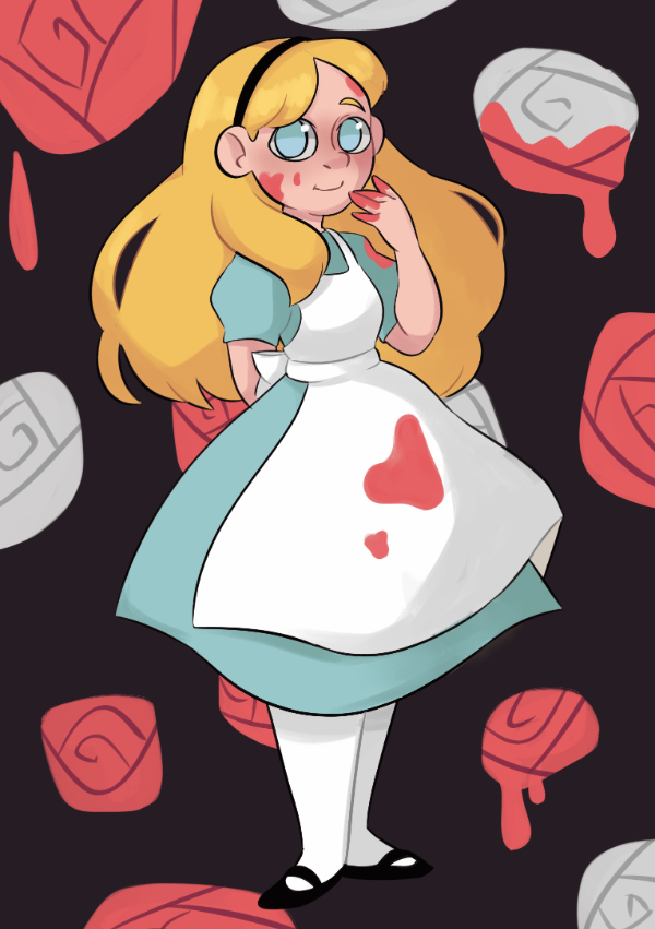 Print de tamaño A5, impreso en papel mate de 300 gr. Con un diseño de Alicia con fondo de rosas pintadas.